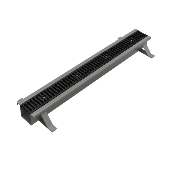 Oceľovú zvodnicu s liatinovou mriežkou ponúkame v prevedení s priamym alebo spodným odtokom; jednotlivé moduly sa spájajú pomocou oceľovej spojky a nerezovej skrutky ISO 7380 – M10x35 za použitia tesniaceho tmelu alebo na objednávku zvárané. Zvodnice majú stabilizačné pätky, ktoré uľahčujú montáž, celá zostava je dimenzovaná na zaťaženie C250.