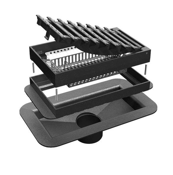 • možnosť montáže priamo pri obrubníku – os odvodnenia 150 mm od obrubníka!!!