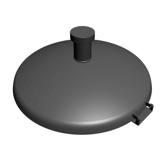 Oceľový studničný poklop s rámom a hlavicou certifikovaný pre triedu zaťaženia A 15, je zabezpečený pántom, uzamykateľným trojhranným nástrčným kľúčom.